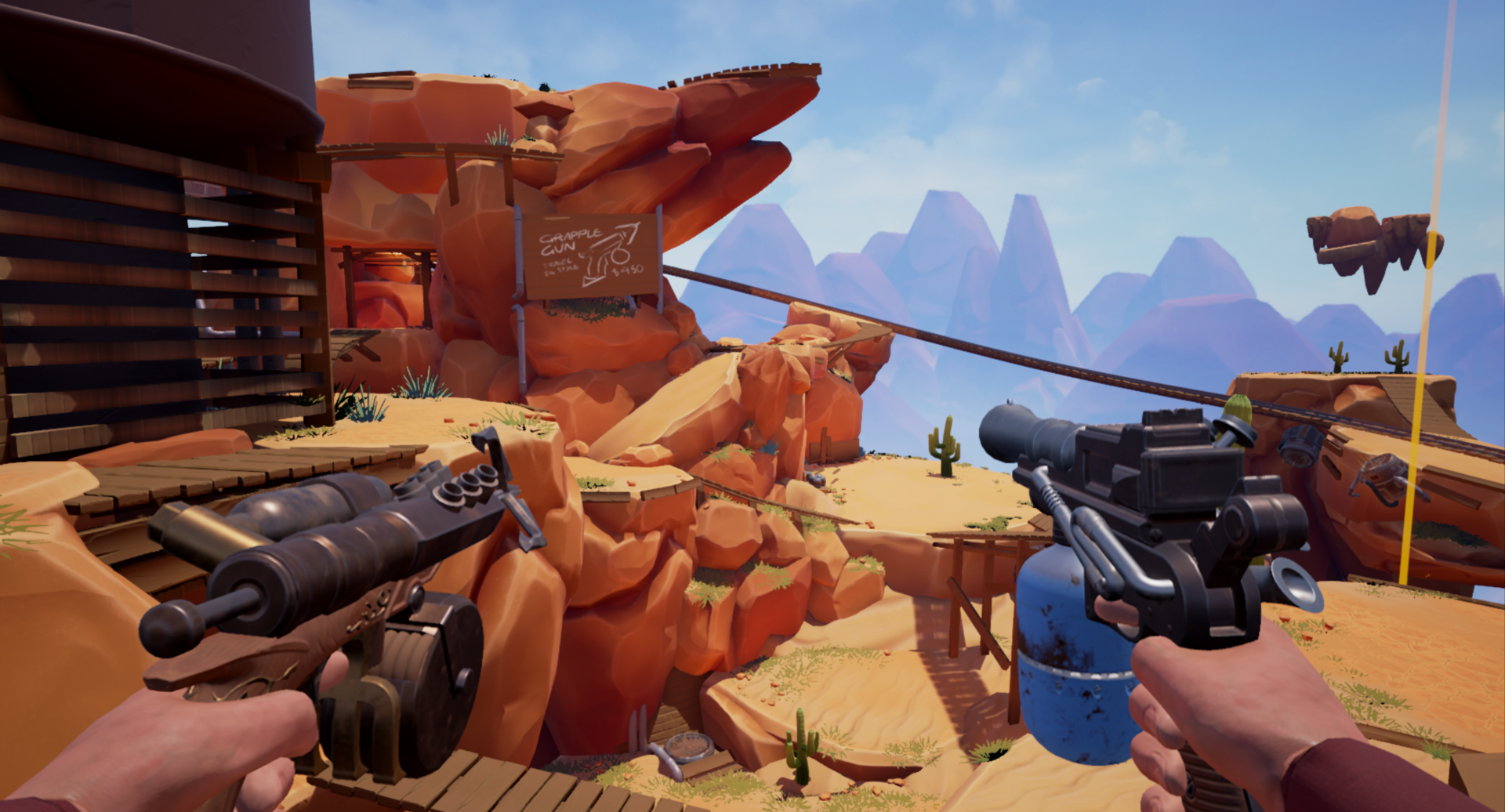 Lunar Rooster was established as part of the third year Game Development programme at Media Design School in 2016, and is comprised of former students Alex Hodgson, Chris Cullen, Craig Taylor and Nathan Minifie. It is a Western-themed first-person multiplayer shooter with brawler mechanics in which players are required to use all the tools at their disposal to keep their footing on ‘The Floating Frontier’.